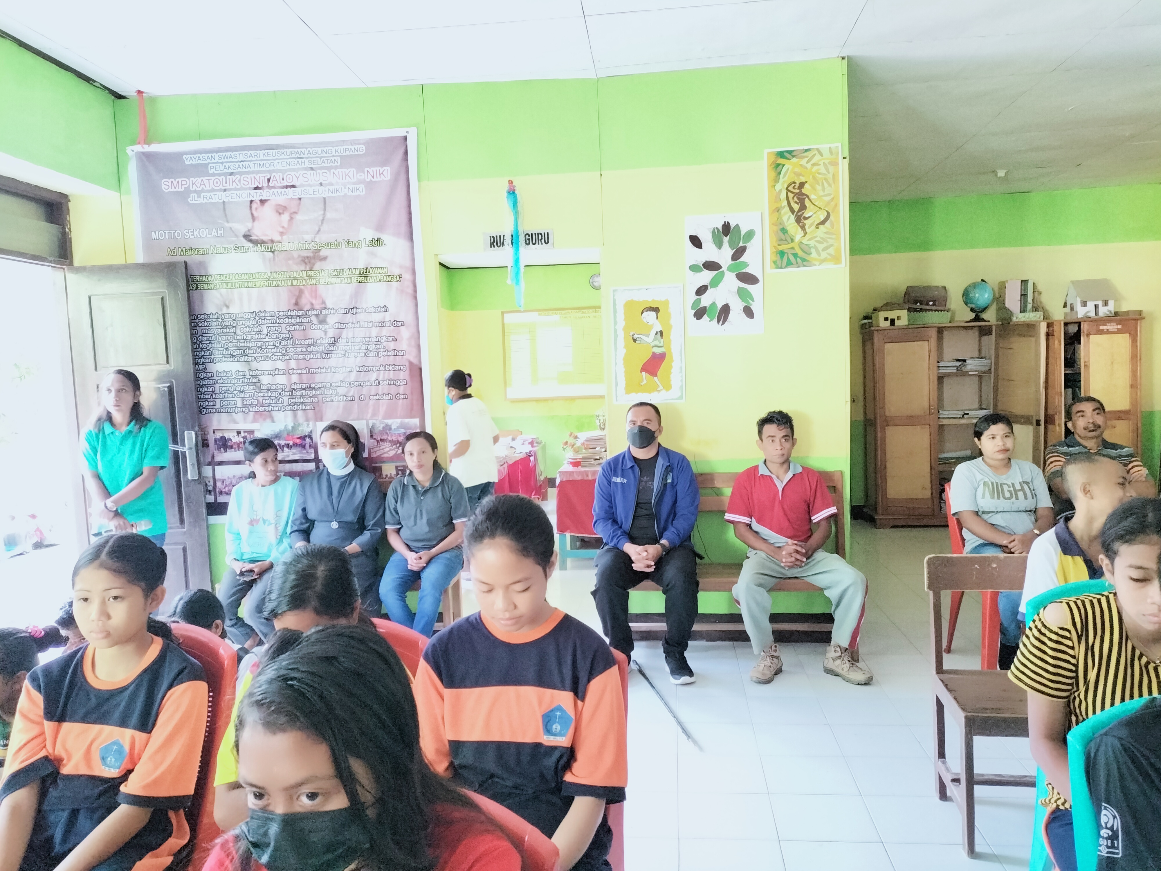 Nah, kali ini kami akan mendokumentasikan kegiatan ibadat tersebut dalam bentuk foto dan juga tata cara ibadat yang dibawakan oleh bapak/ibu guru dan pegawai; termasuk di dalamnya renungan singkat yang dibawakan oleh bapak/ibu guru dan pegawai.